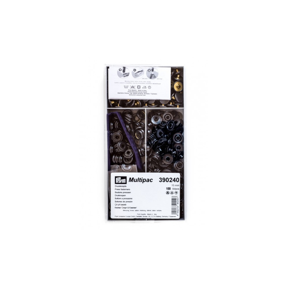 Knoflík stiskací SPORT & CAMPING 15mm černý oxid (Prym) - 100ks/krabička