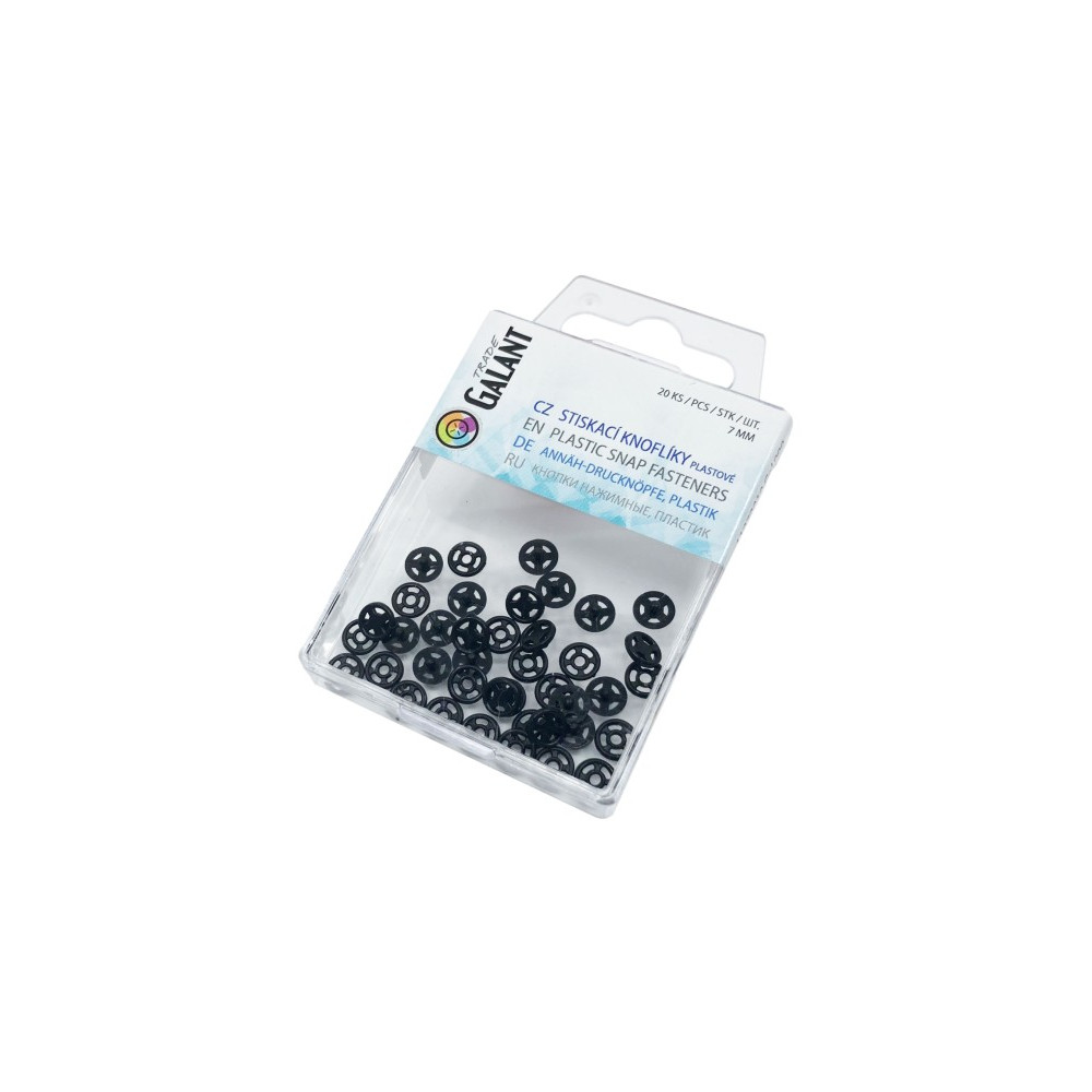 Stiskací knoflíky plastové 7mm černé - 20ks/pl.krabička