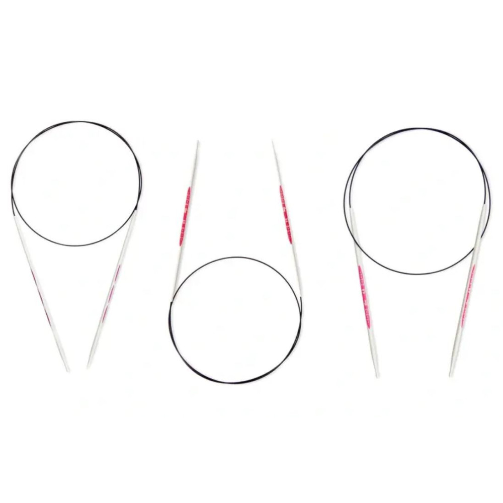 Revoluční kruhová pletací jehlice z vysoce funkčního syntet. materiálu. Ergonomická, lehká a nehlučná. Špička ve tvaru kapky umožňuje jednodušší zachycení příze a hladké vedení ok (podpořeno  trojúhelníkovým profilem jehlice). Jehlice jsou spojeny ocelovým, plastem potaženým lankem, které je pevné, jemné, poddajné. Délka 80 cm. Karta obsahuje 3 ks - 3 / 3,5 / 4 mm.