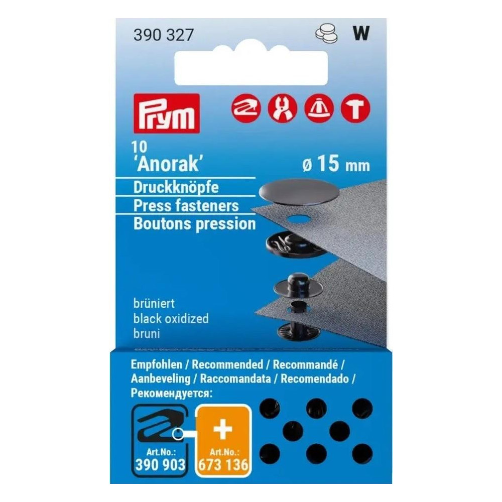 Knoflík stiskací ANORAK 15mm - černý oxid (Prym) - 10ks/karta