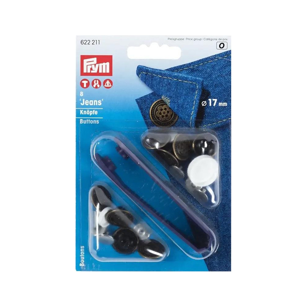 Knoflík JEANS 17mm - staromosaz (Prym) - 8ks/karta
