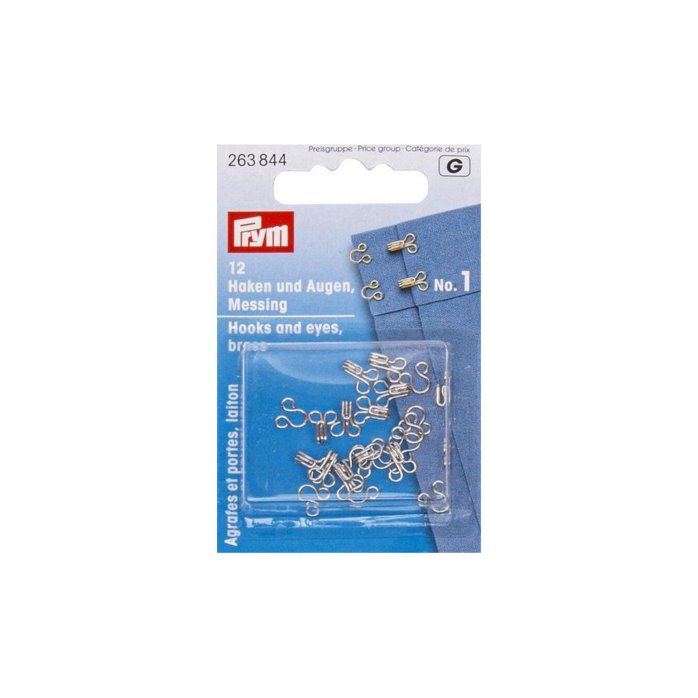 Háčky a očka mosazné 1 - stříbrné (Prym) - 12párů/karta