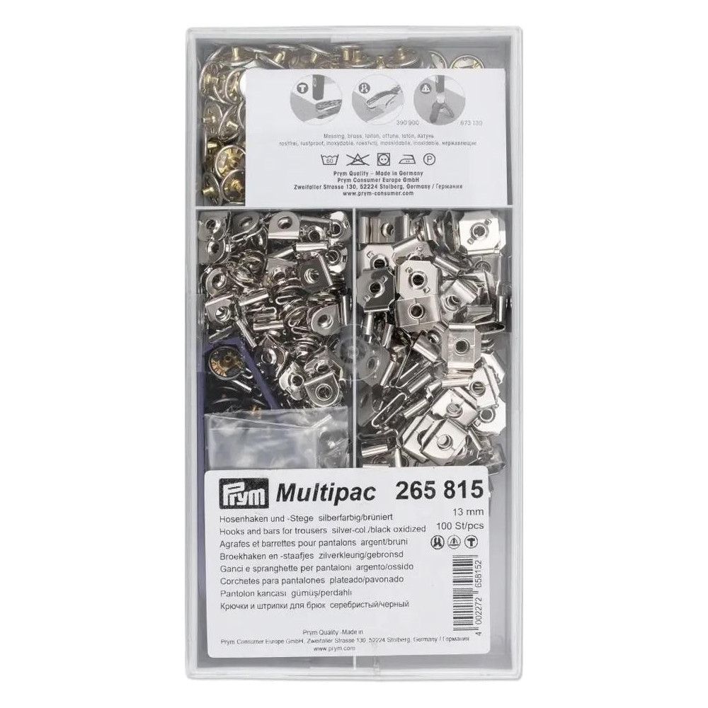 Kalhotové háky čtyřdílné 13mm - stříbrné-černý oxid (Prym) - 100ks/krabička