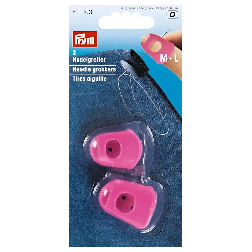 Silikonový náprstek Prym Needle Grabber ve tvaru náprstku je ideální pomůckou pro ruční šití, zejména při protahování jehly skrze více vrstev látky nebo pevné materiály. Díky silikonovému materiálu zajišťuje pevný úchop jehly a chrání prsty před poraněním. Náprstek je vybaven větracími otvory na spodní straně a předním otvorem pro delší nehty, což zajišťuje pohodlné nošení. Balení obsahuje dva náprstky ve velikostech M (14 mm) a L (19 mm), vhodné pro palec a ukazováček nebo prostředníček. Dostupné v tyrkysové nebo růžové barvě.