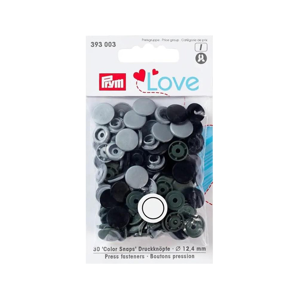 Press fasteners Colour Snaps PRYM LOVE 12,4mm - c. grey - 30pcs/card