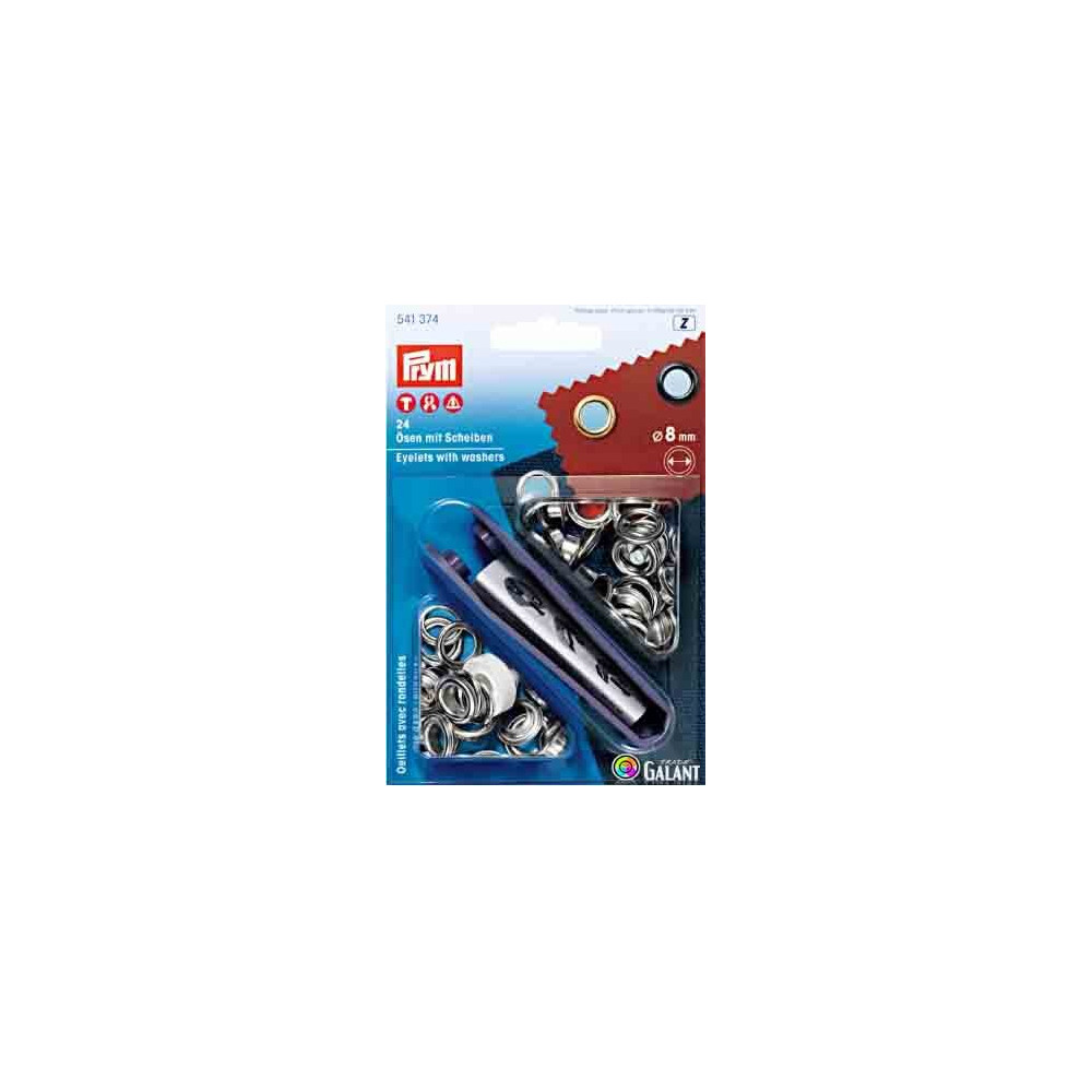 Brass Eyelets with Washers 8mm - silver (Prym) - 24pcs/card