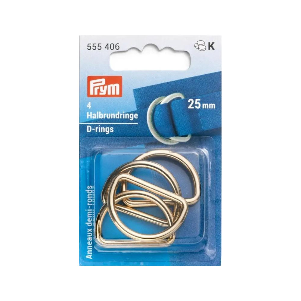 These high-quality 25 mm gold D-rings by Prym are perfect for attaching straps to bags, belts, and other textile projects. The pack includes 4 pieces, sufficient for most projects. Made from durable materials, these D-rings ensure longevity and reliability in use.