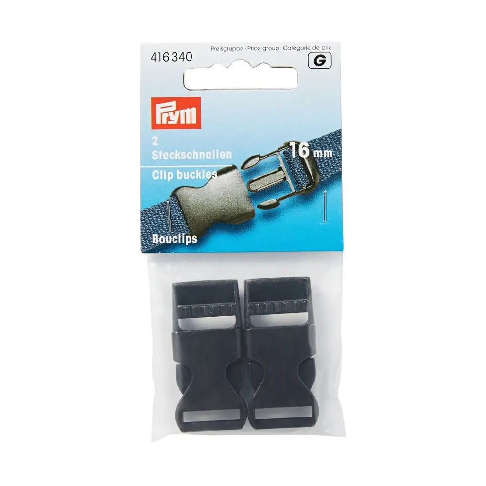 Clip buckles strong 16mm - c. black (Prym) - 2pcs/card