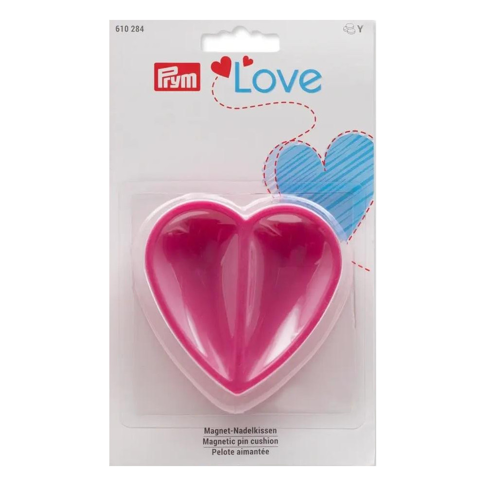 The "Magnetic Pin Cushion Heart Prym Love" is a practical and stylish sewing accessory designed for easy pin storage. It features a heart-shaped design with magnetic properties that help keep your pins securely in place. Ideal for sewing enthusiasts, it combines functionality with an attractive look.